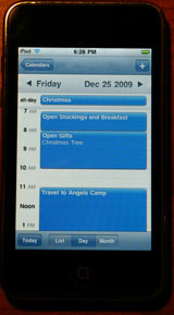 For some time, my wife and I have been looking for a way to coordinate our family calendars electronically. Some time ago, I purchased an iPod Touch and thought its calendar might be appropriate, but at the time the only synchronization it supported was with Microsoft Exchange or with Apple’s MobileMe service. Since I already operate a Linux server at home, I’m not willing to also invest in MobileMe, and running an Exchange server seemed like too much effort just for calendar synchronization.