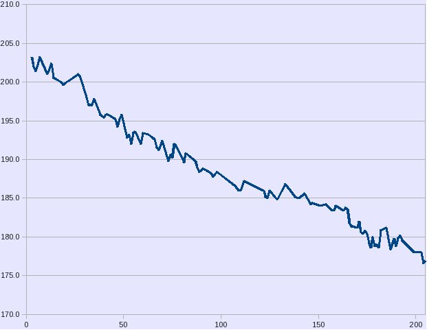 Needless to say (since I wrote this blog entry), I have been very happy with the results. I set a goal to lose 25 pounds, and achieved that in almost exactly six months. This is slower than my previous diets, but I have a sense that I’m doing a better job of setting a healthy eating pattern than I had previously.