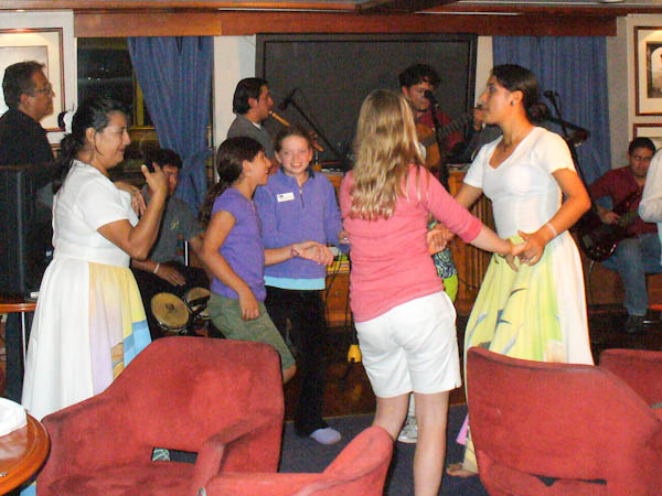 This evening’s activities back on the Endeavour included a presentation from one of the scientists at the Charles Darwin Research Station. After dinner, we had entertainment from a local musical group along with lively dancing. Celeste particularly got into the dancing, but they even managed to recruit me at one point to join in.