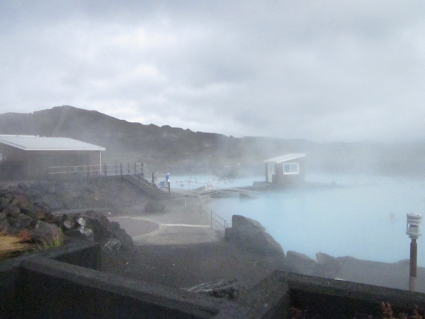 After our return hike and another bumpy ride back, we went to the nearby Nature Baths for lunch followed by our first experience with Iceland’s many public paths. Like the famous Blue Lagoon near Reykjavík, these baths draw from the output of a geothermal power plant. Locker room facilities were very nice. The water is an eerie bluish-white at about 97 degrees, and it has a very slippery feel. We spent about a half hour in the bath, then continued south along Lake Mývatn.