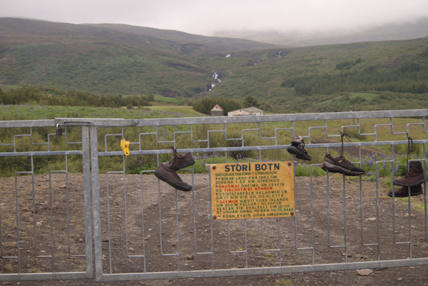 After lunch, we set off down the next fjord toward Reykjavík, intending to hike to Glymur, which is the highest waterfall in Iceland. We had heard it is a bit of a hike and came prepared for that. Figuring that we could comfortably allocate 1 hour and still make the 6 pm deadline to turn in the rental car, we were discouraged by the sign said it was a 2 1/2 or 3 hour hike. So we gave up and continued to Reykjavík.