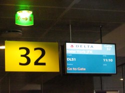 While waiting at the gate to board, Celeste was paged. This was the time for her additional screening. I accompanied her; after they checked with me, a female security person gave her a quick pat-down and then looked through her backpack. The security person then swabbed her gloves for the mass spectrometer test, looking for explosive residue. No problems, of course, so we were brought back to the gate and expedited onto the plane.