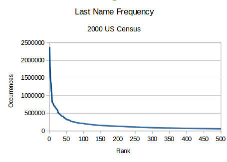 A classic challenge question dating from well before the use of online services is, “What is your mother’s maiden name?” Since one measure of authentication strength we often use is the entropy (roughly, how hard is it to randomly guess the correct value), I thought it might be interesting, at least as an academic exercise, to figure out the entropy associated with last names in the United States.
