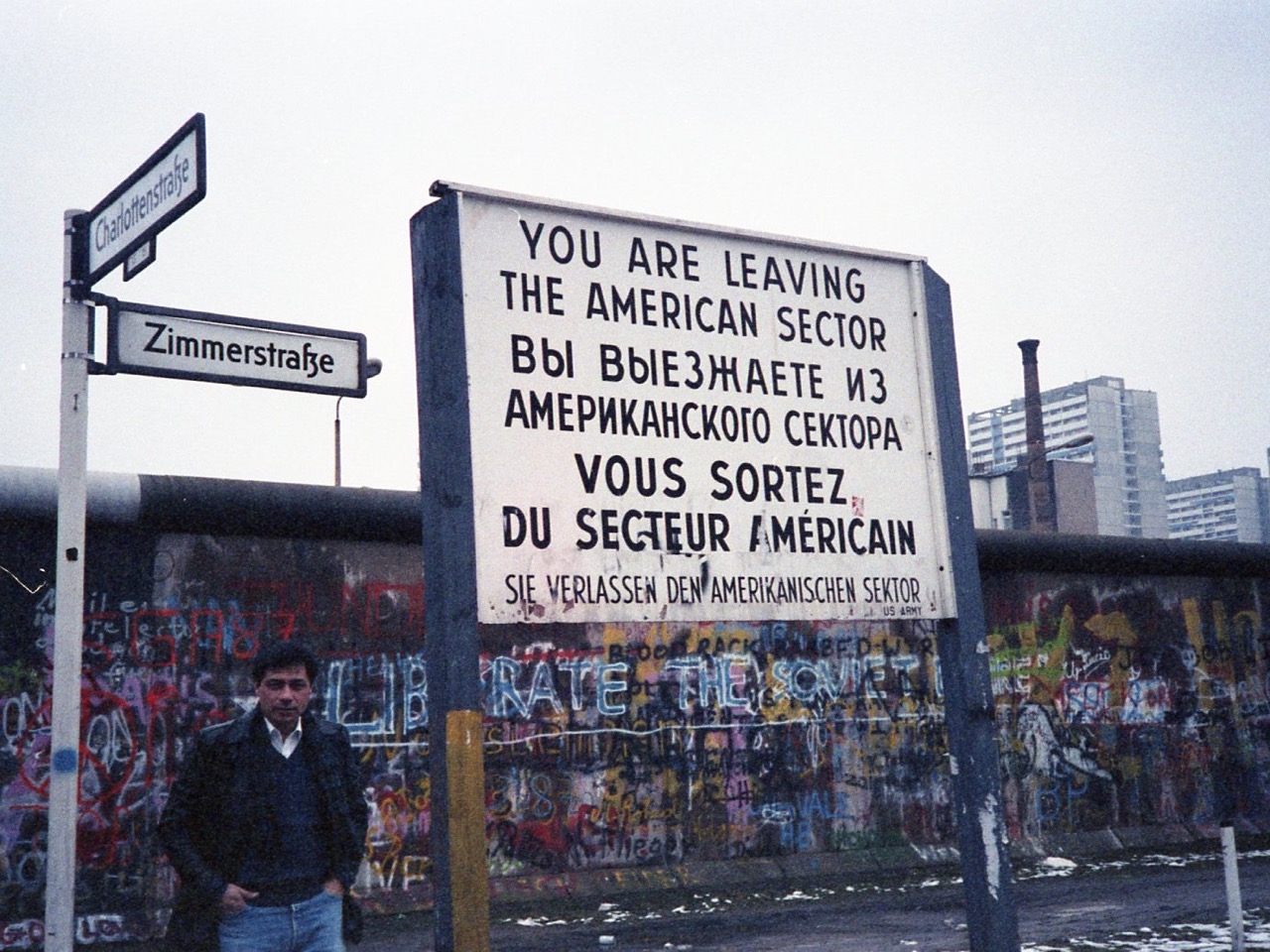 After lunch, we went to the vicinity of Checkpoint Charlie, the famed cold-war border crossing. We first went one block east, to the corner of Charlottenstraße and Zimmerstraße, where I had a picture I had taken of a colleague in 1987. Now, instead of a graffiti-covered wall and a You Are Leaving The American Sector sign, there is a busy intersection. Very different.