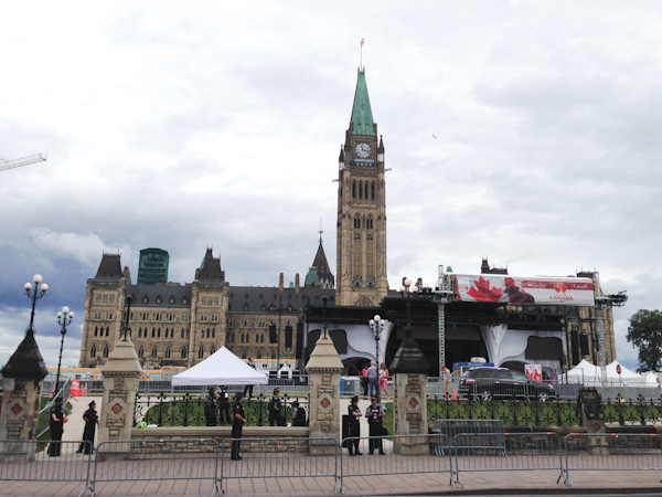 After the motorcade passed, we were able to walk in front of the Parliament building known locally as “Centre Block”, at a considerable distance of course. There was also quite a bit of preparation for Canada Day celebrations the day after tomorrow.