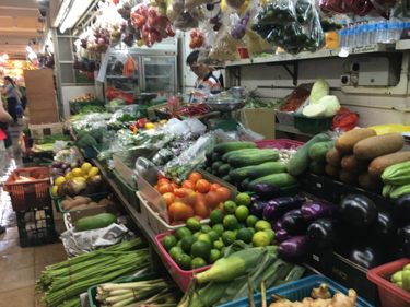 Kenna and Wendy arranged to meet at Starbucks and from there they decided to walk to Little India. They used a walking tour they found in a guidebook and some ideas of other sights they had heard about to plan where to go. They were immediately impressed by how different this neighborhood was from other parts of Singapore. The Tan House was one of the first stops. It is not named for its color because it is actually very colorful. It is name for the family who owned it. After that they wandered around the Tekka Centre Wet Market which also has a large area upstairs with clothing and textiles. They then visited the Abdul Gafoor Mosque. They took off their shoes and wore appropriate covering to go in but didn’t stay long as there were many people having prayers. Later when they were outside again a pleasant gentleman greeted them and was helpful in explaining the mosque and answering any questions. They walked on to the Mustafa Centre, a multi-level superstore full of any kind of item you could think of, mostly imports from the subcontinent. They stopped at a nice Indian place for a delicious lunch. Then, as it was getting to be late afternoon, they moved on at a faster pace through the Kampong Glam district, a mostly Arab neighborhood, before returning to the hotel to freshen up for their evening activities.