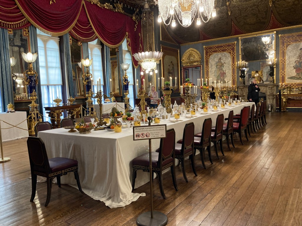 Brighton’s Royal Pavilion has had a varied history, having been of less interest to Queen Victoria (George IV’s successor in the throne) who moved most of the furnishings to London and sold the building to the City of Brighton. Over the years it has been refurnished in the original style and with many of the original furnishings, some of which have been loaned by Queen Elizabeth. The Pavilion was in the process of being decorated for Christmas, which reminded us of a visit we made two years ago to Filoli in California.
