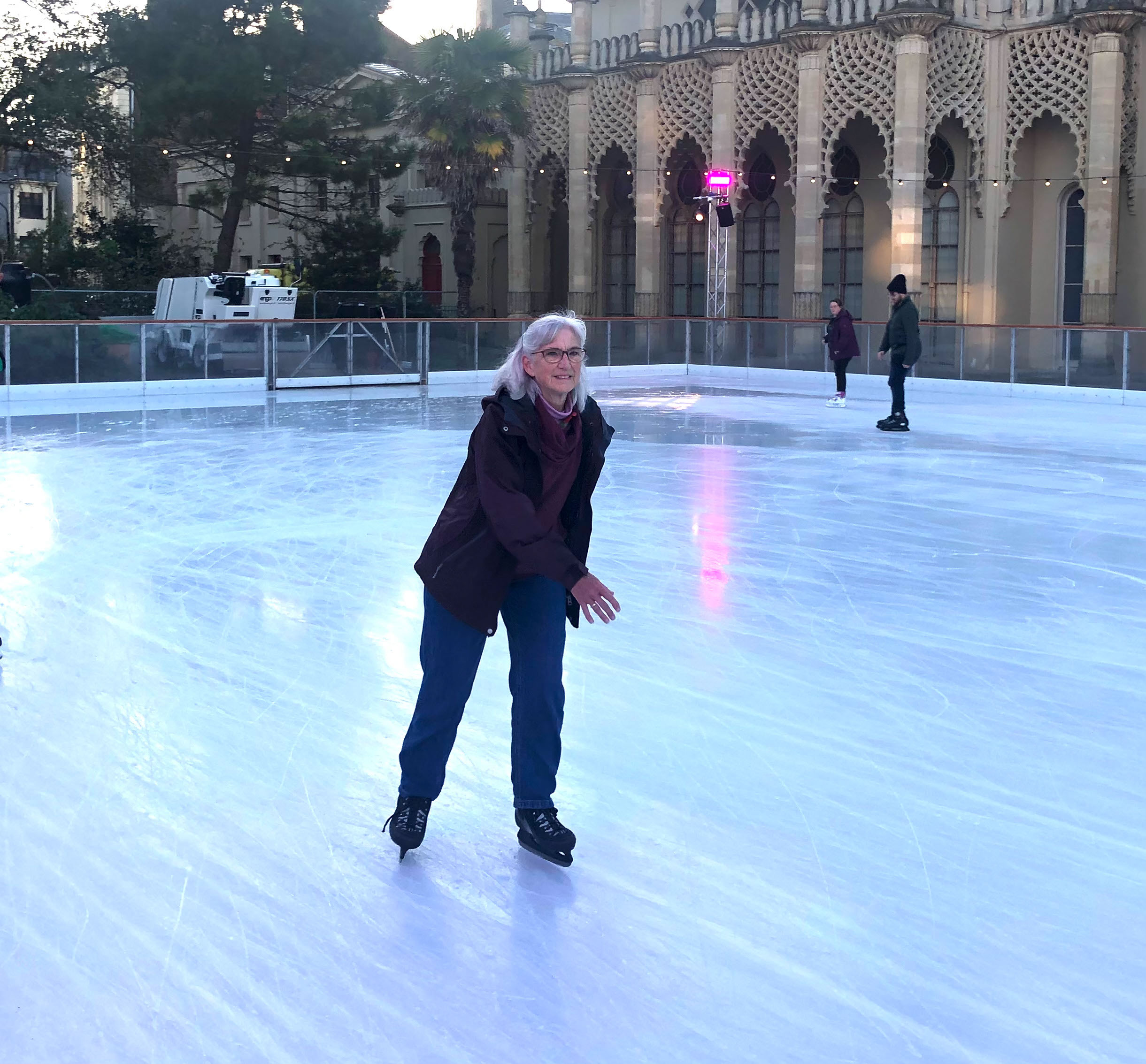 Celeste and a friend of hers (another exchange student from Colorado) joined us in the afternoon to go ice skating at the Royal Pavilion Ice Rink. While I am used to hockey skates, it was a bit of an adjustment to the others who are used to the toe picks on figure skates. We all got the hang of it; the ice was beautifully maintained (although with some puddles) and the rink was not particularly crowded for our 3 pm session.