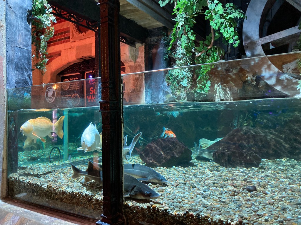We checked out of the apartment/hotel just before checkout time and stored our bags. Then the question was what to do until Celeste finished classes so we could all take the train to London. The answer was the Sea Life Brighton, apparently the oldest aquarium in the world. While not an extensive collection, many of the exhibits were in a classic style with ornate frames supporting the glass windows. There was a very enjoyable tunnel where you can sit while fish (and turtles!) swim overhead. The aquarium covered a number of regions of the world, with more of an emphasis on fresh-water fish than many others we have seen.