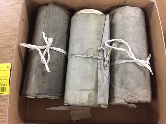 The National Archives is located on an attractive campus in Kew, just west of London. My wife and I went to the reading room and were photographed for our reader’s tickets (actually plastic cards) and admitted to the room. We checked out the document and took it to a reading desk. On opening the box, we had quite a surprise: the document was a scroll!