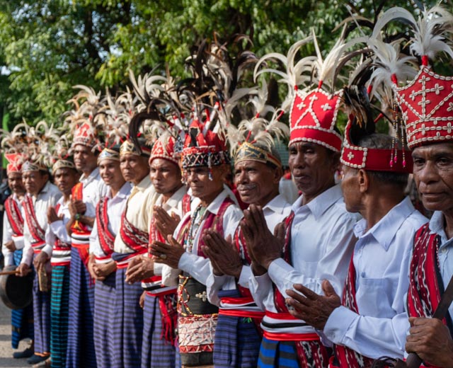 We then continued a few miles east to an area where several performing groups representing different areas and islands had gathered. Each was dressed in the traditional attire of their home area and performed music and dance for us. At the end of the performance, we were invited to join them in dancing, which we did. It was fun, joyous, and a nice way to connect more with the people. Many pictures and selfies were taken to commemorate the occasion.