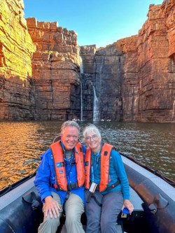 After lunch, we boarded one of the Zodiac boats for King George Falls, which was about a 3-hour round-trip ride with some narration stops. The early part of the ride was a bit choppy, but it settled down as we approached the coast. At one of the stops early on, we were fortunate to see a rock wallaby, which is notoriously shy. We also saw a couple of peregrine falcons, which are said to be the fastest animals.