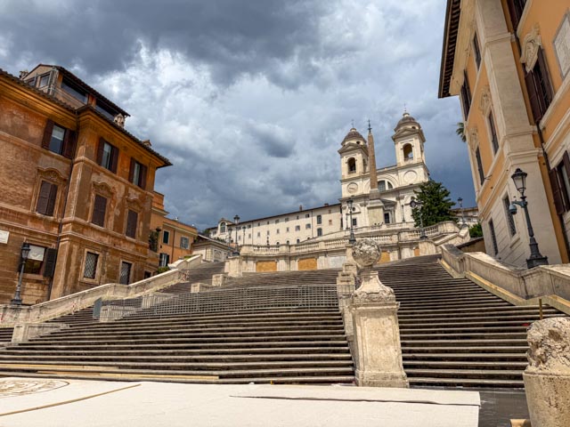 When we got to the Steps, we saw a rare sight: they were empty. It turned out they were closed with police tape keeping people out. We found out later that someone had attempted to drive their car down the Steps and got stuck. The car wasn’t evident, but they were still cleaning up the area. There was also a lot of lighting equipment at the bottom of the steps, as though perhaps a movie was about to be filmed, but we never found out about that.