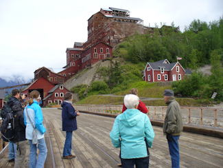 It rained quite a bit last night, so I was glad not to be taking a hike first thing in the morning. Instead, following breakfast, we took a 2 1/2 hour tour of the Kennecott Mill, which described the crushing and separation of the copper ore from surrounding limestone. The mill building is 14 stories tall, built on the side of a hill, and is said to be the largest wood-frame building in the United States. The local copper mining and milling operation was a marvel of management, a huge investment but enormously profitable in its 27 years of operation. A chemical extraction plant was also built that used ammonia to dissolve the copper to separate it from the limestone. The concentrated ore was shipped to Tacoma, Washington for smelting and refinement.