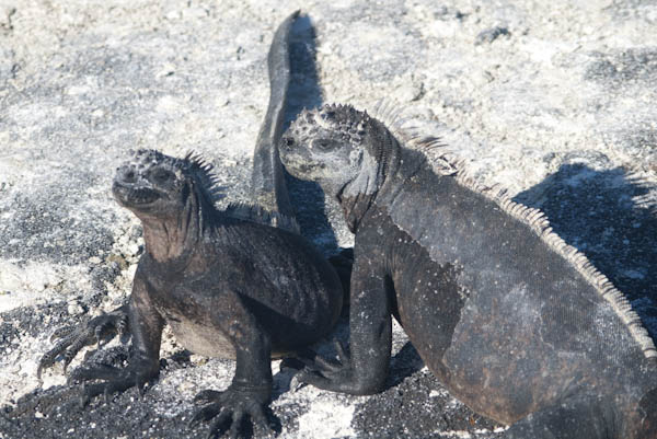 The rest of our tour on Fernandina showed mostly what were now familiar creatures: marine iguanas, sea lions, and the very colorful crabs. One thing I hadn’t noticed before was the iguanas “spitting” salt water. This is done to such an extent that small creatures, such as a lava lizard we saw, sometimes have a distinct whitish cast from the dried salt.