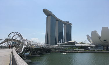 While Jim was “sprinting”, Kenna tried to figure out how to get started exploring Singapore. She found a walking route for visiting sights around the Marina Bay area, and seeing that it was close by, decided to start there. She walked toward the Marina Bay Sands, the iconic hotel that looks like three towers with a surfboard on top. After crossing the Helix Bridge she found a passage through a higher level of the hotel that led to an area that overlooked the Gardens by the Bay. She then continued around the bay and back to the hotel as she was feeling the heat and humidity. It was a relief to get into the shopping mall adjacent to the hotel. She explored a little before finding a place to get a late lunch.